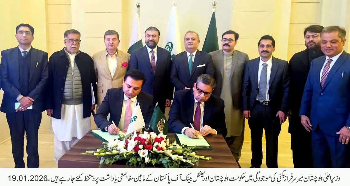 حکومتِ بلوچستان اور نیشنل بینک آف پاکستان کے درمیان ایک اہم باہمی معاہدہ طے پا گیا ہے، جس کے تحت صوبے میں طلبہ، ورکنگ ویمن