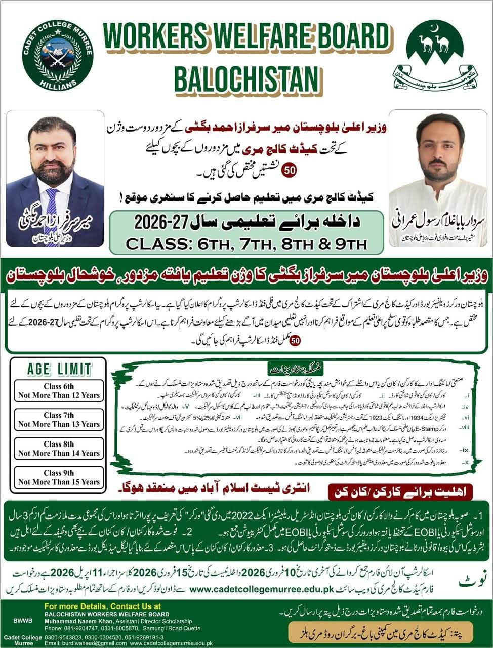 وزیراعلیٰ بلوچستان میر سرفراز بگٹی کے مزدور دوست وژن کے تحت ایک اہم اور قابلِ تحسین تعلیمی اقدام سامنے آیا ہے، جس کا مقصد محنت