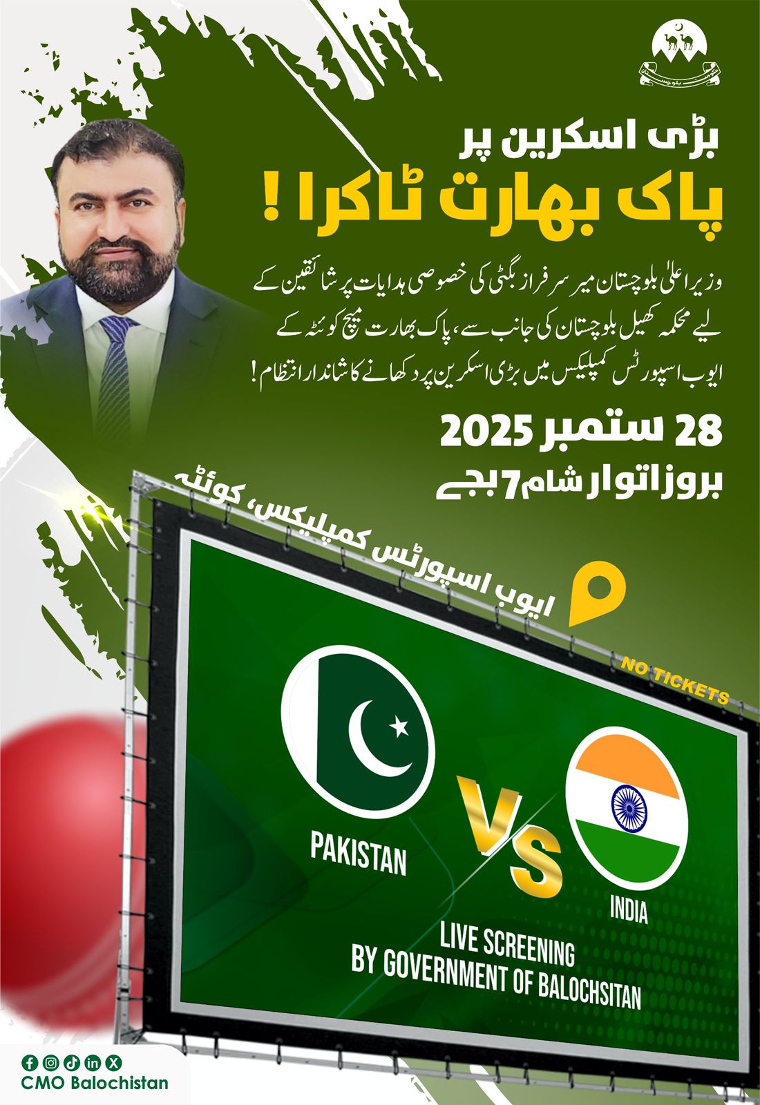 Read Moreوزیر اعلیٰ بلوچستان میر سرفراز بگٹی نے پاک بھارت ایشیا کپ فائنل کے موقع پر قومی ٹیم کے لیے نیک…