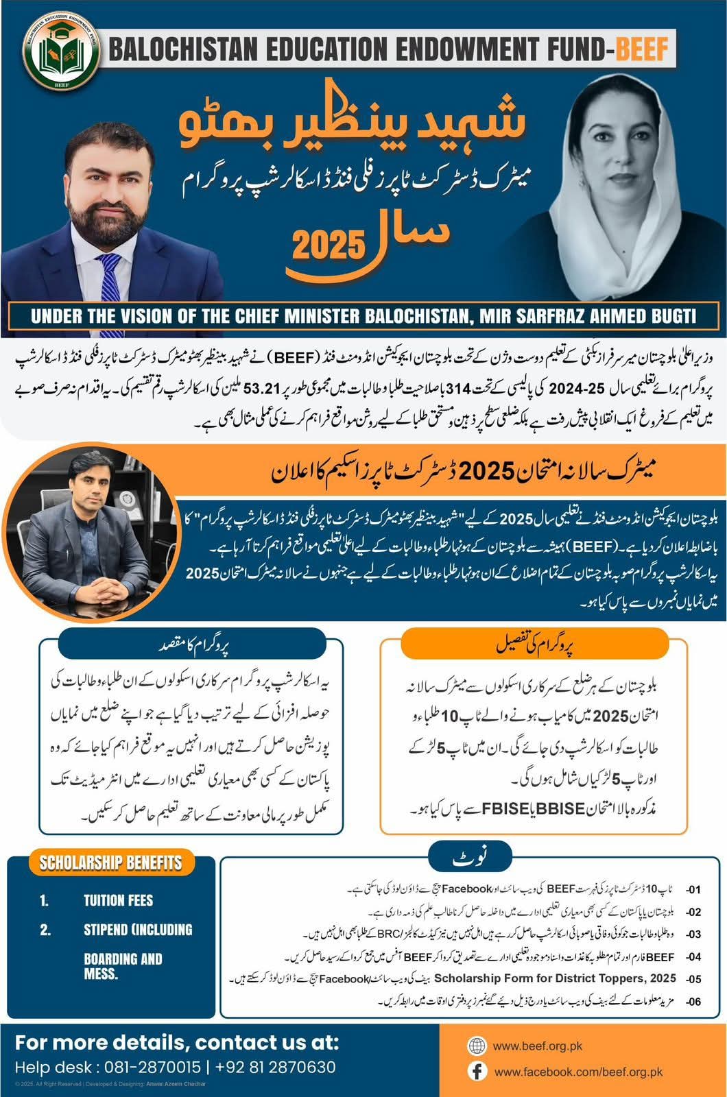 Read Moreوزیر اعلیٰ بلوچستان میر سرفراز احمد بگٹی کے تعلیم دوست وژن کے تحت بلوچستان ایجوکیشن انڈومنٹ فنڈ نے ایک اور…
