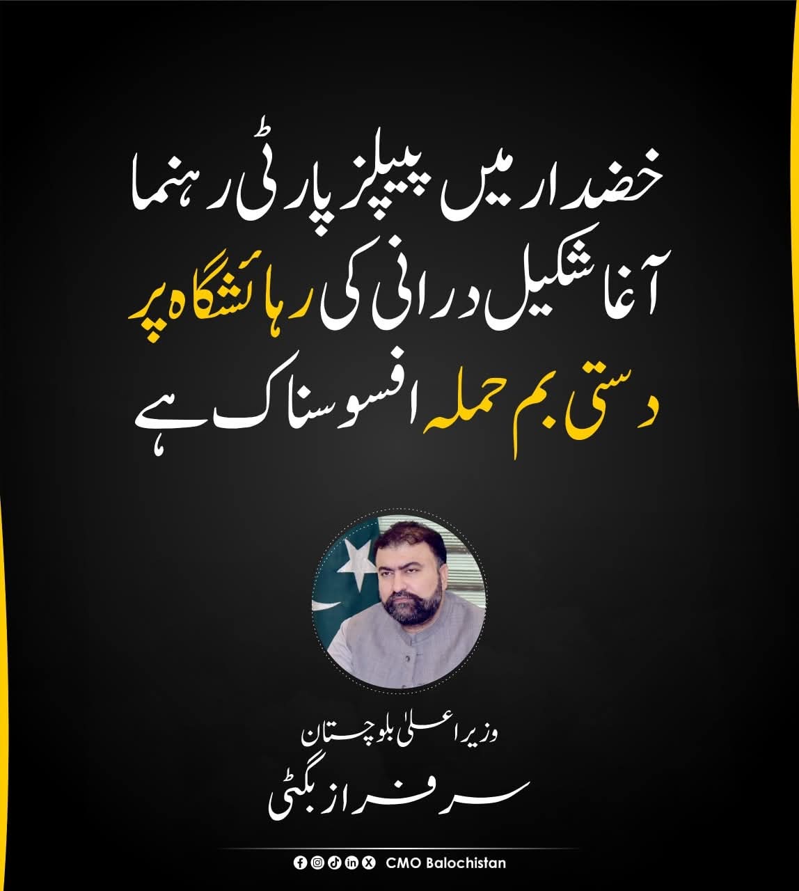 Read Moreخضدار میں پاکستان پیپلز پارٹی کے رہنما آغا شکیل درانی کی رہائش گاہ پر دستی بم حملے کے واقعے نے…