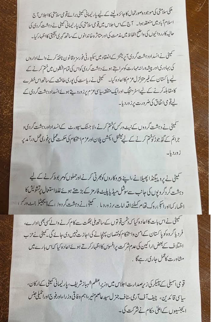 قومی سلامتی کمیٹی کا اہم اجلاس چھ گھنٹے تک جاری رہا، جس میں اعلیٰ سیاسی و عسکری قیادت نے شرکت…