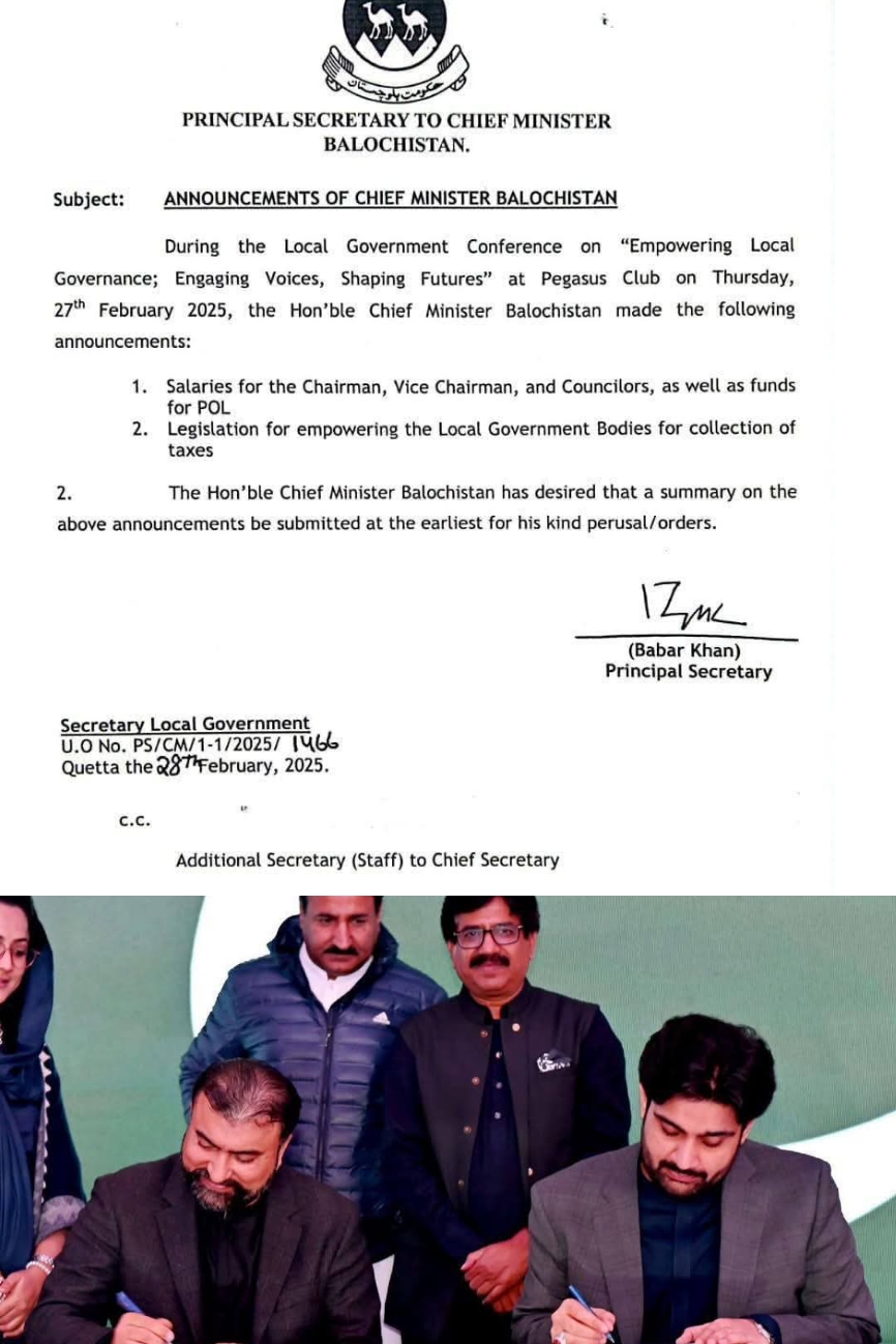 وزیر اعلیٰ بلوچستان میر سرفراز بگٹی کی جانب سے 27 فروری 2025 کو منعقدہ لوکل گورنمنٹ کانفرنس میں کیے گئے…