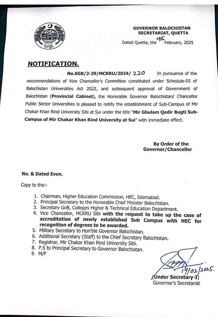 بلوچستان میں اعلیٰ تعلیمی سہولیات کی فراہمی کو یقینی بنانے کے لیے وزیر اعلیٰ بلوچستان میر سرفراز بگٹی کی قیادت…