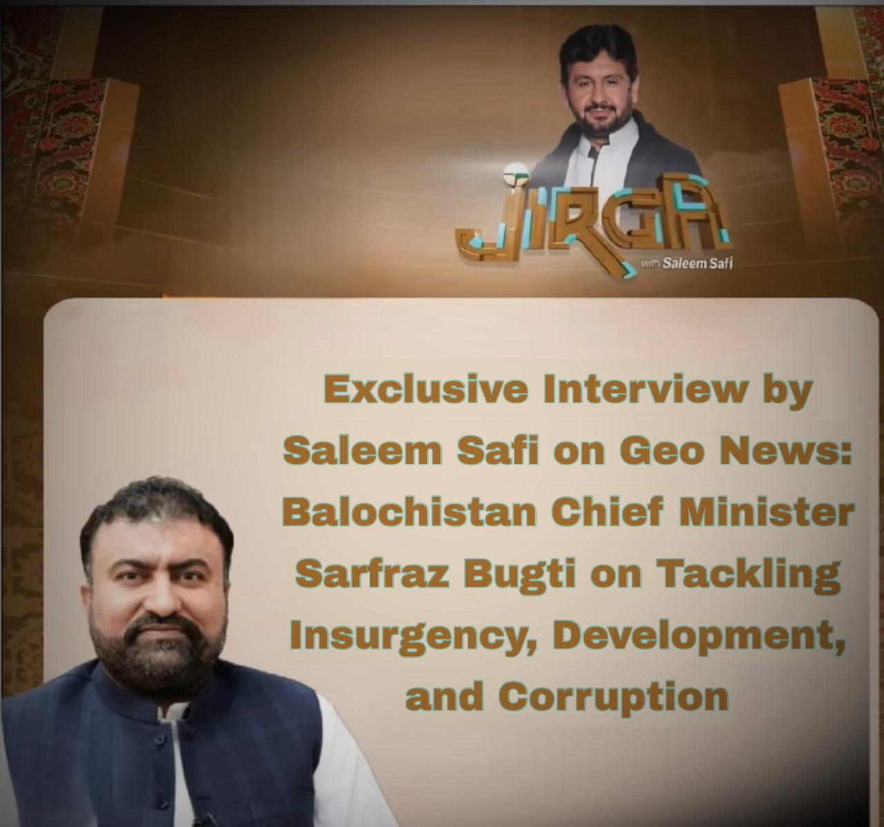 Read Moreجیو نیوز پر معروف صحافی سلیم صافی کے ساتھ ایک بصیرت انگیز انٹرویو میں، وزیراعلیٰ بلوچستان سرفراز بگٹی نے بلوچستان…